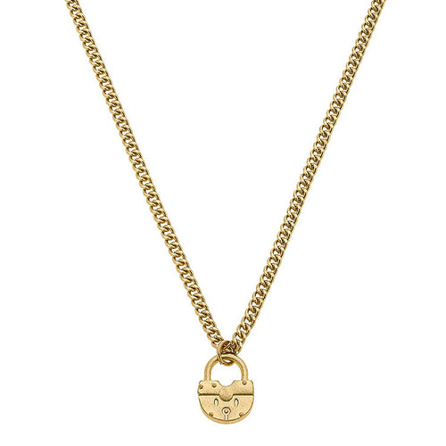 Aspen Padlock Necklace in Worn Gold