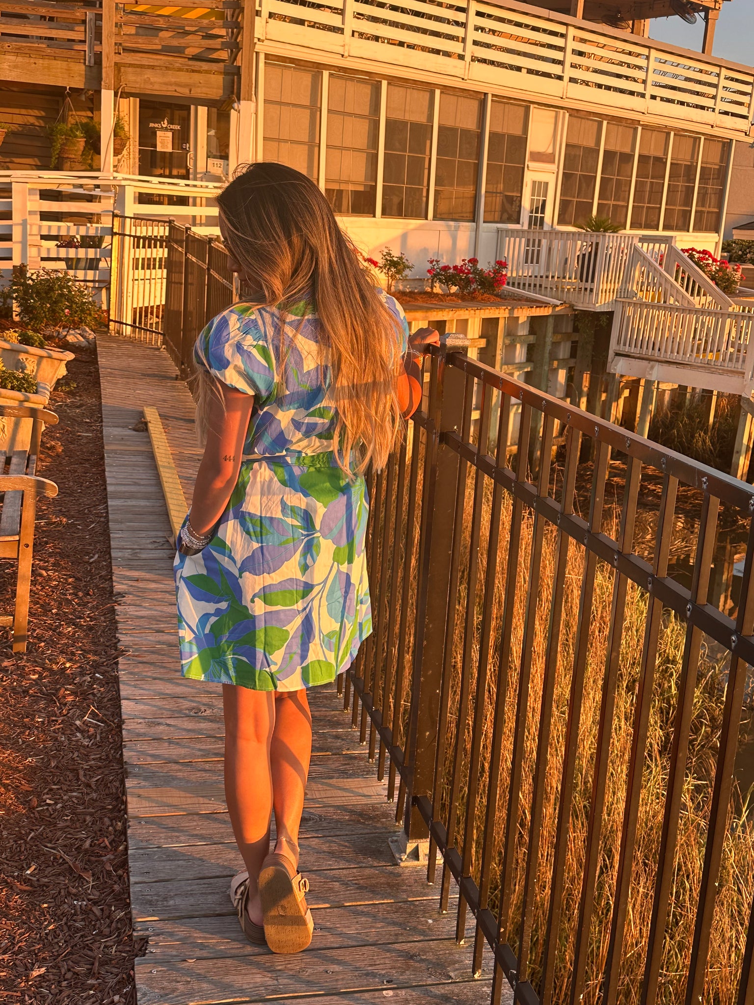 Step into sunshine with The Holden Dress, a playful mini shift that blooms in blue-green hues. Its breezy silhouette keeps you comfy and chic, perfect for twirling through warm days or casual nights out. Embrace effortless style with a splash of floral fun!