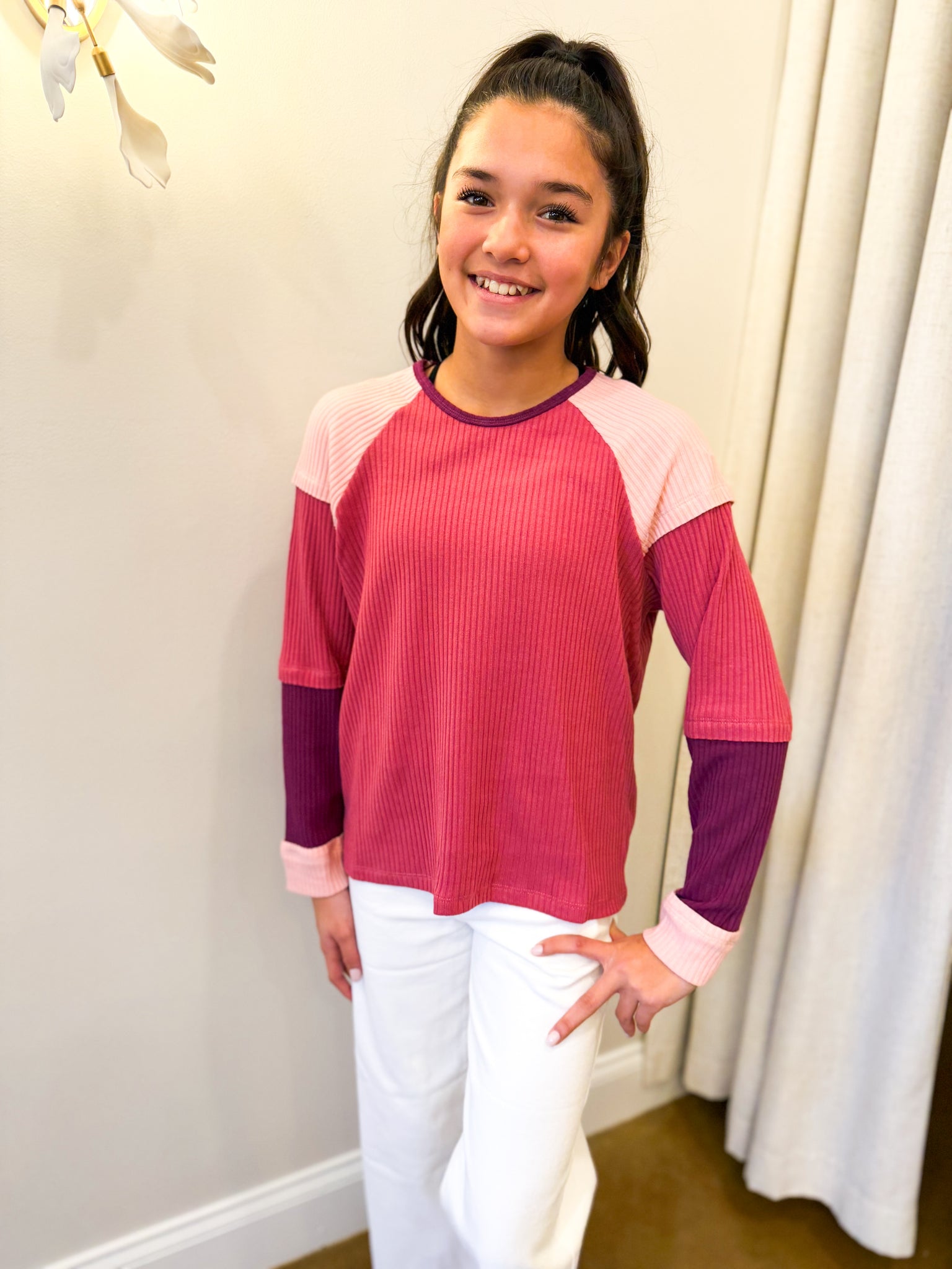 The Lover Top brings vibrant color-blocking fun to your girl's wardrobe. This playful ribbed knit tee features bold contrasting panels that mix and match effortlessly with her favorite bottoms. The soft, stretchy fabric moves with her all day—perfect for playdates, school, or weekend adventures. Designed for comfort and style, it's the go-to piece that makes getting dressed exciting.