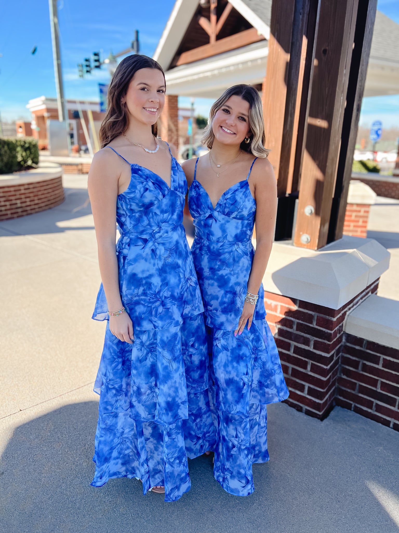 The Sapphire Romance Dress features a flowy and elegant design, ideal for spring formals, proms, weddings, and beach events. Its floral watercolor pattern enhances visual appeal, while the V-cut neck and adjustable straps ensure a customized fit. The tiered ruffles add motion, offering a sophisticated silhouette.