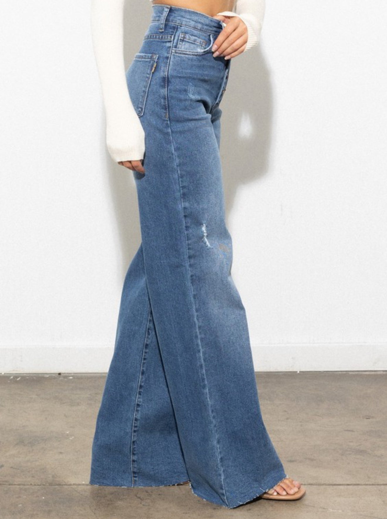 Step into fun and flair with The Tampa Jeans! These criss-cross, high-waisted wide-leg jeans bring a playful twist to your wardrobe, flattering your silhouette while keeping comfort front and center. Perfect for turning heads and dancing through your day with effortless style.