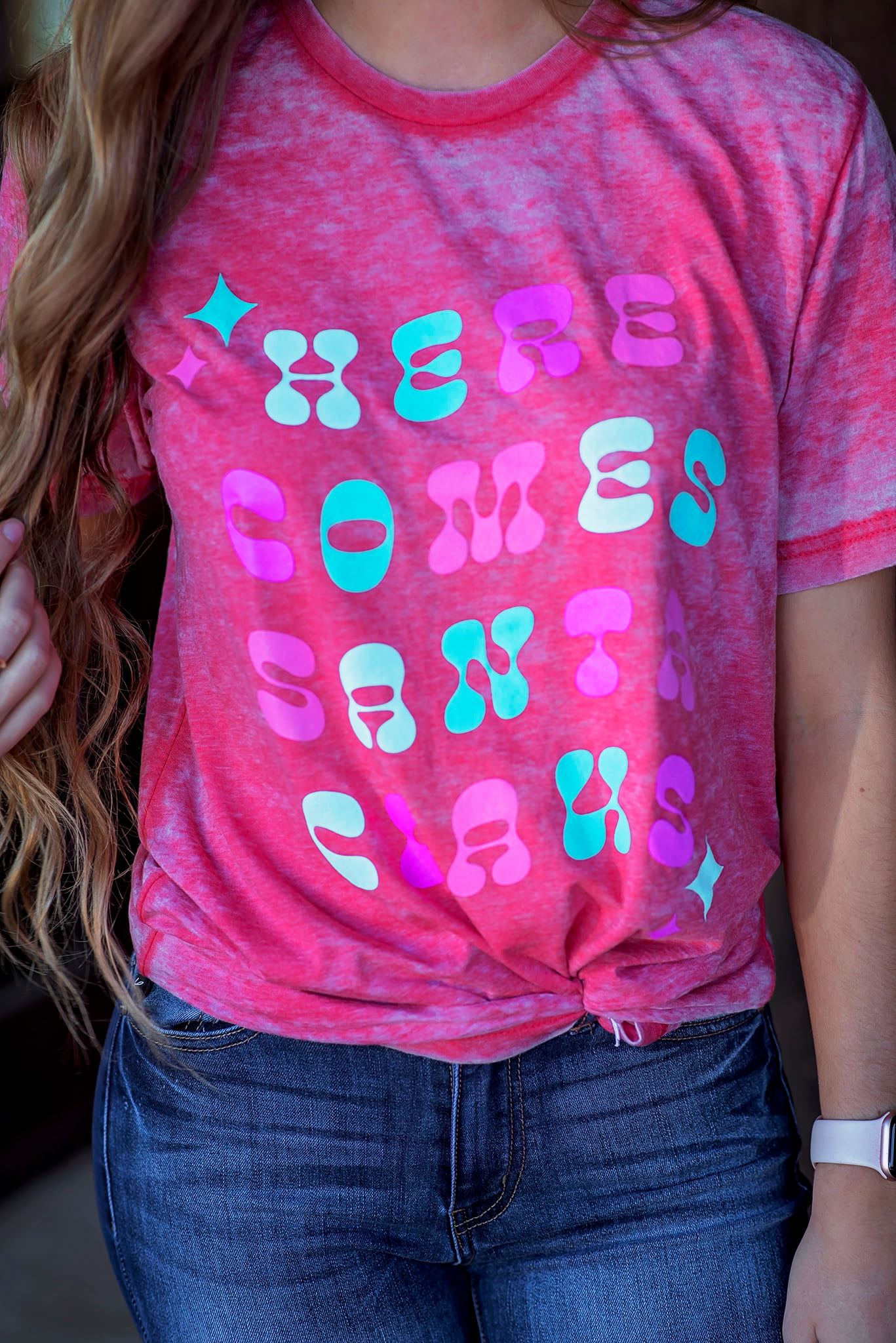 This is our FAVORITE burnout style tee! Ya just can't go wrong with it. Throw on your favorite cardigan and you're ready to go!